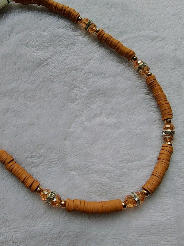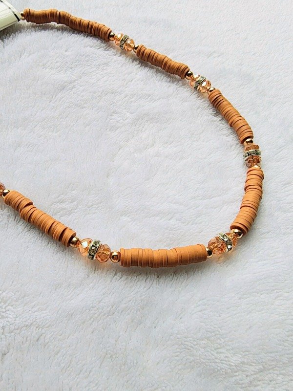 gargantilla combinada en meta, cristal y ruedas de caucho, tono tostado y ámbar con regulador de largo.